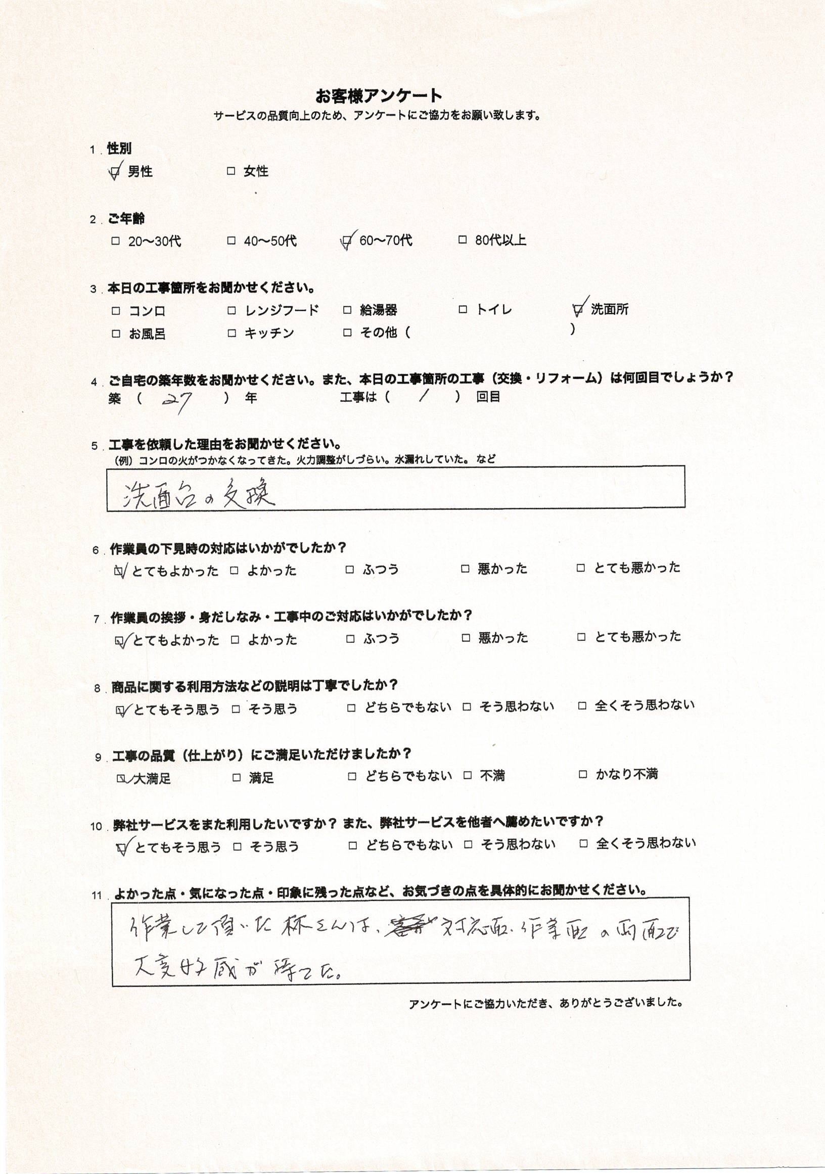 2025/11/30洗面台のお客様の声